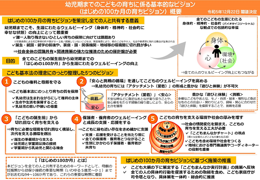 https://www.cfa.go.jp/policies/kodomo-taikou - *3 こども家庭庁『幼児期までのこどもの育ちに係る基本的なビジョン (はじめの100か月の育ちビジョン)』