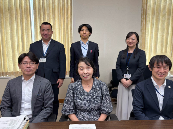 ※写真の前列左から文部科学省初等中等教育局の生方特別支援教育課長、清原、酒井企画官、後列左から渡邉課長補佐、新井さん、初山さん