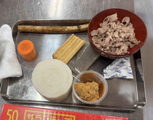私たちはこどもたちが、ゴボウ・ニンジン ・ダイコン・生揚げ・コンニャクを切るのを手伝いました。