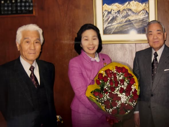 そして、当選してしばらくして、突然に片柳理事長と相磯学長は、大きな花束を抱えて三鷹市役所に祝福に駆けつけてくださいました。(写真)
