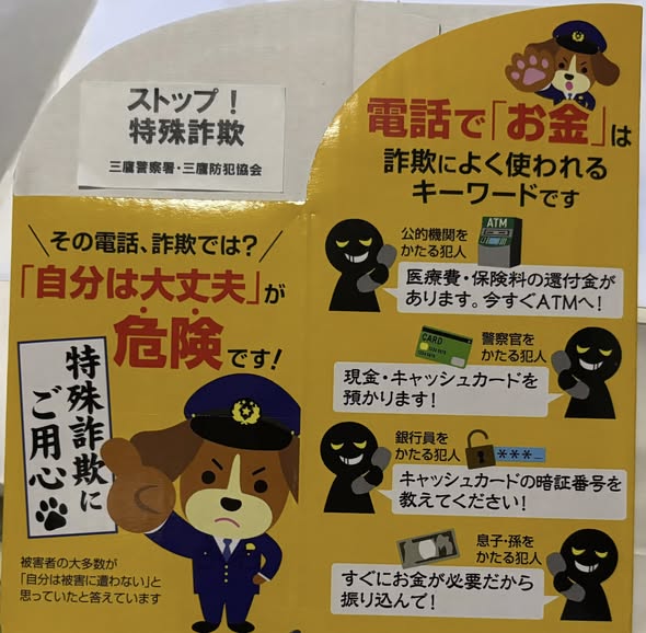 それ以外に【警視庁三鷹警察署生活安全課】の警察官による【特殊詐欺防止】の啓発が行われていました。