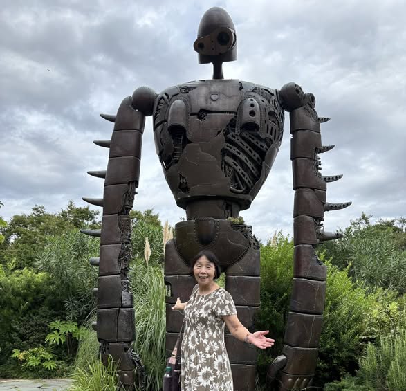 そのあと、らせん階段を上って、屋上で【天空の城ラピュタ】のロボット兵に挨拶して、庭園をめぐり【めだか】にも会いました。
