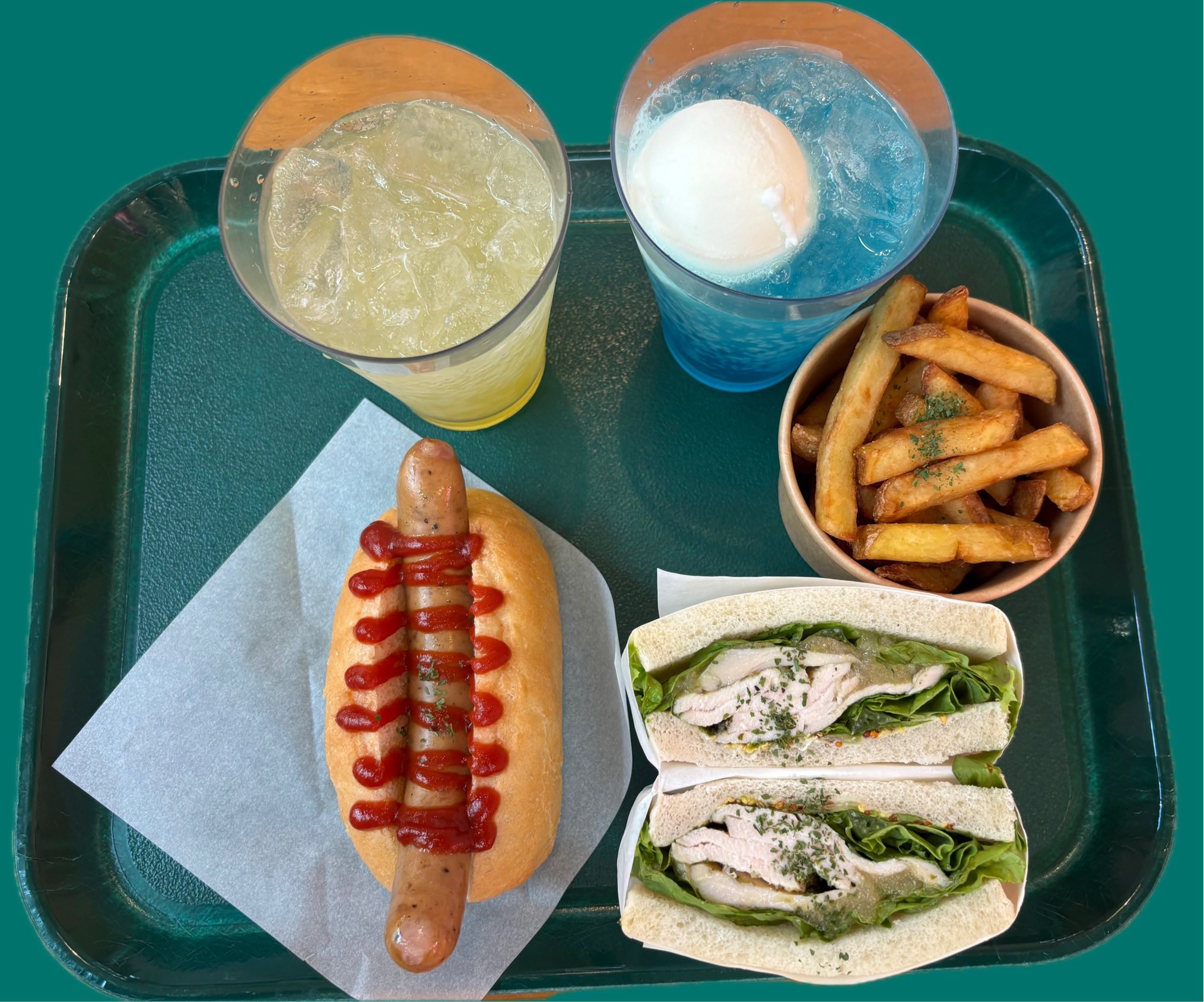 お昼の時間帯には混雑していたはずのカフェ【麦わらぼうし】は、2時頃にはテーブルに座ることができて、孫息子はホットドッグ、私はチキンサンドイッチの飲み物を、ゆっくりと、ゆったりと食べることができました。