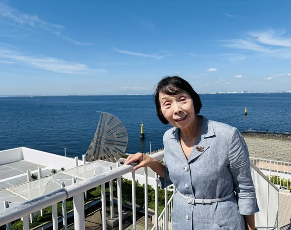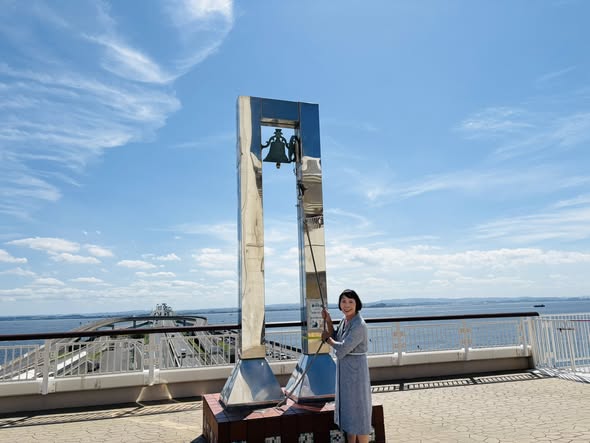 海を行く客船や漁船、空を飛ぶ飛行機、遠くに見える工場地帯など、海の真ん中の【海ほたる】の場所だからこその雄大な景色が広がり、私自身も心を広げることができました。