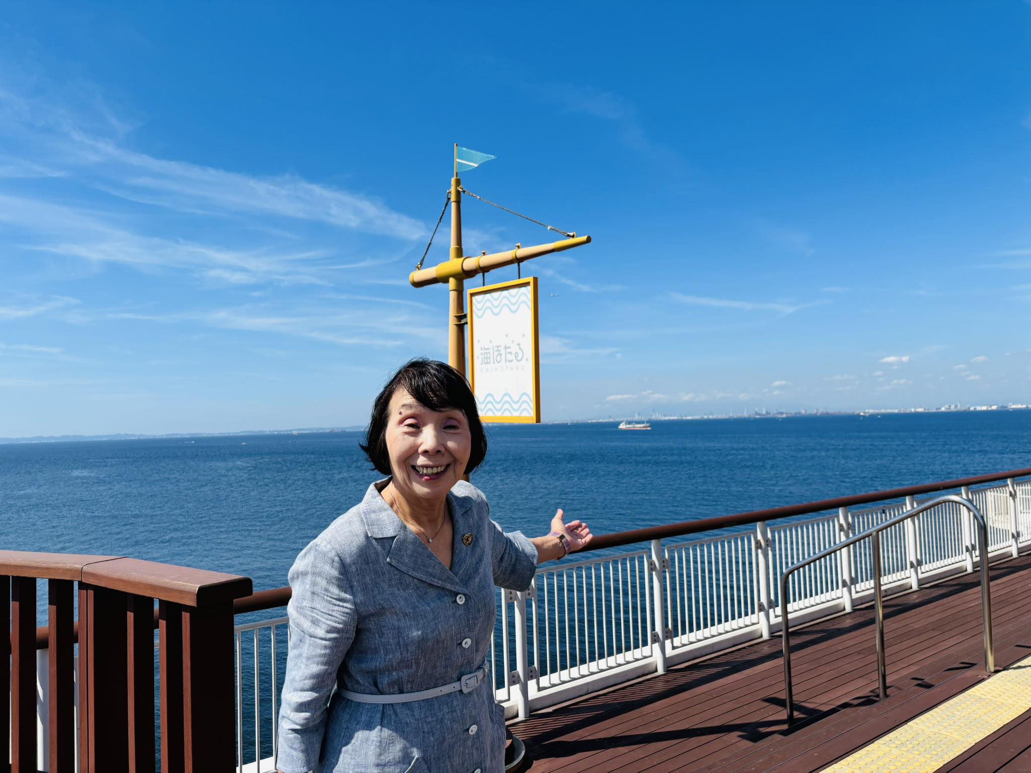 あちらこちらに【海ほたる】と書かれた撮影ポイントがあり、私もそれぞれの箇所で海を見渡し、潮風を浴びながら記念撮影をしました。