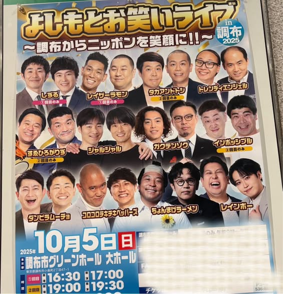 これまで、浅草演芸ホールや、新宿の末広亭で落語や漫才を聴く機会ももってきましたが、今回、まさに近隣市である調布グリーンホールでの【よしもとお笑いライブ】での【大笑い】の経験を踏まえて、この秋も、社会や身近な地域の課題解決に向けて、前向きに考察と実践をしてきたいと思います。