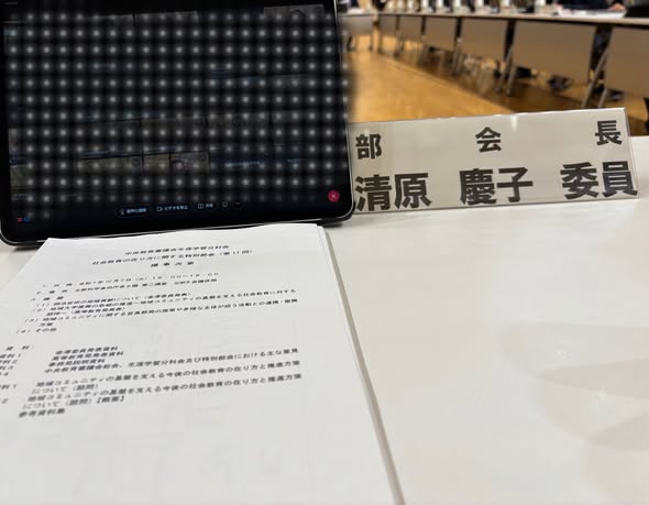 この特別部会は、2024年6月に文部科学大臣から諮問された【地域コミュニティの基盤としての社会教育の在り方】についての審議を行うために設置されたものであり、この日はこの諮問における審議事項2【社会教育活動の推進方策】のうちの4つ目の課題である【地域コミュニティに関する首長部局の施策や多様な主体が担う活動との連携・振興方策】について、意見交換しました。