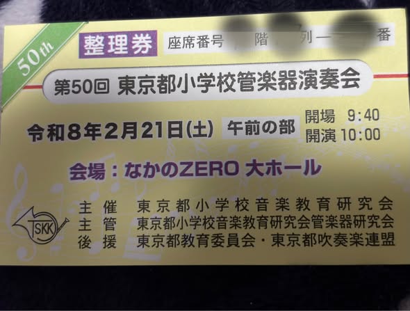 2月21日、「なかのZERO」大ホールで開催された「第50回東京都小学校管楽器演奏会」に行ってまいりました。